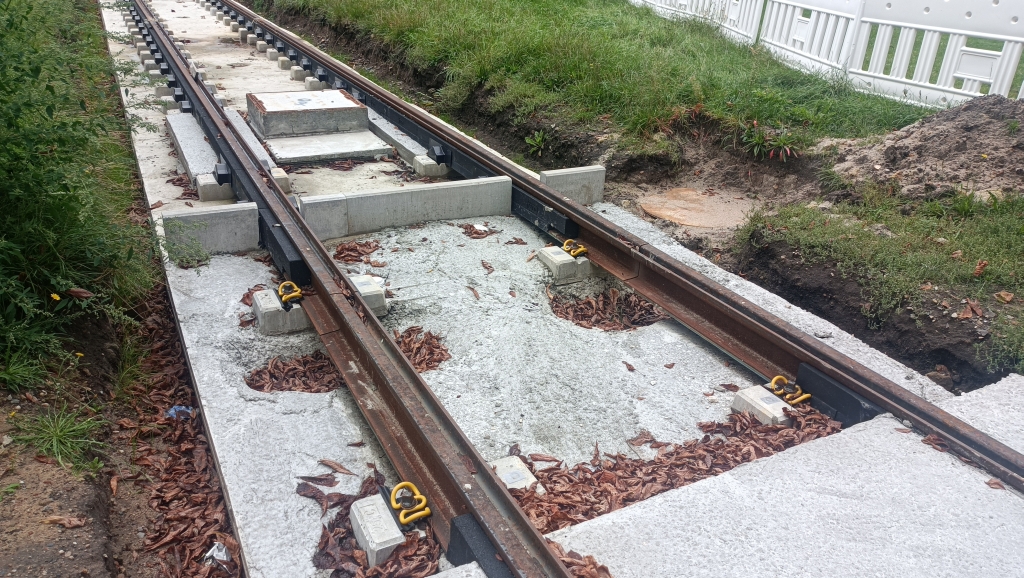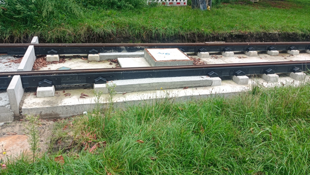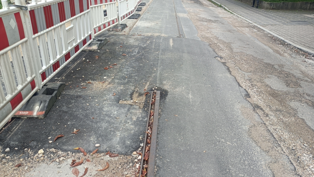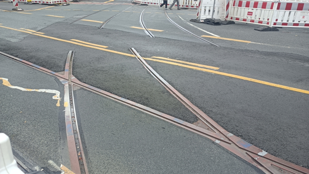 ^ Bedingt durch die Lage der Weiche wird man hier künftig stadteinwärt langsamer fahren müssen als zuvor. Ob man die Abstellmöglichkeit wirklich je nutzen wird, bin ich gespannt, für Fahrgastbetrieb ist die ja nicht optimal, was da steht muss am Morgen seine Fahrt ohne Fahrgäste starten. Aber das war noch nicht die Sache, die mich zweifeln hat lassen.