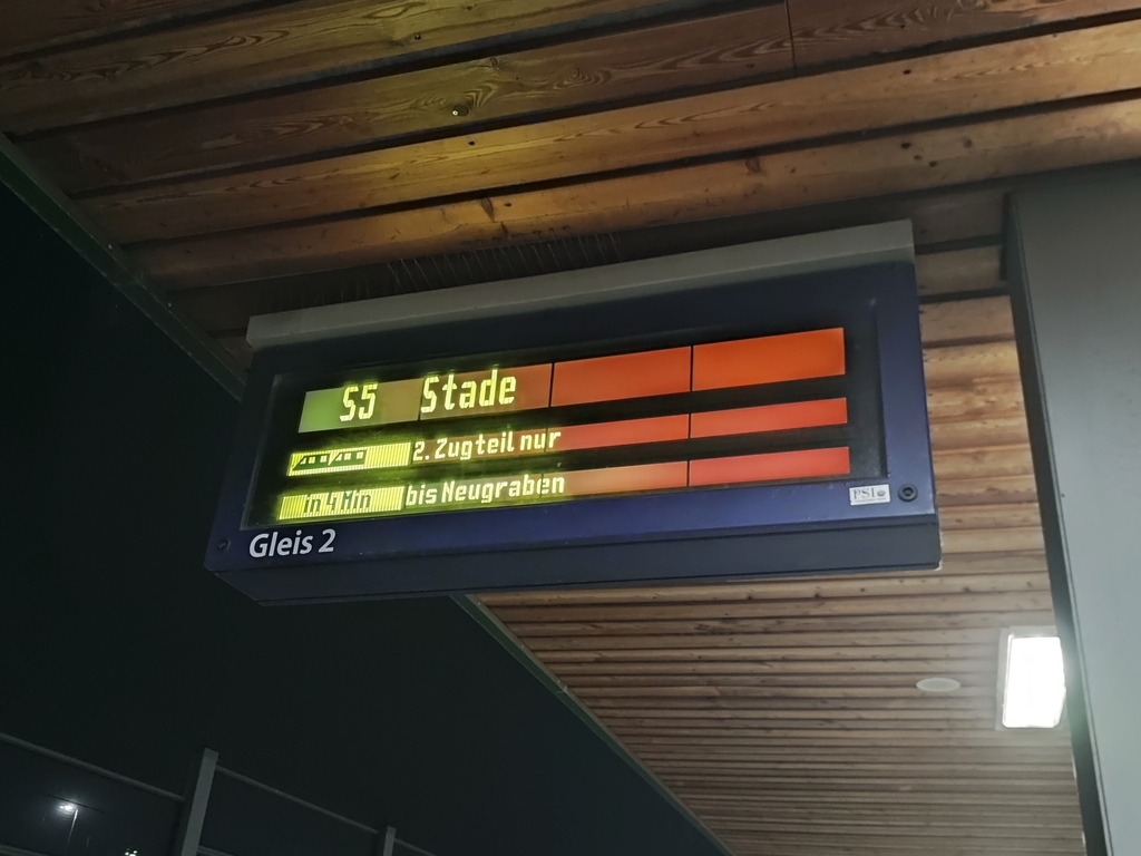 Rein Logisch wäre das Fahrtziel Stade realistischer, da man dann nicht für drei Stationen schwächt, sondern noch eine längere Strecke als Kurzzug kommt.