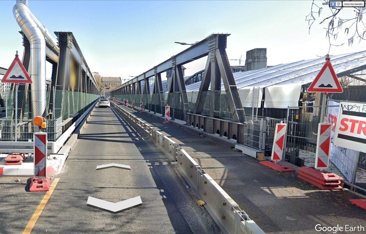 Danach geht sie vor der Brücke in Fahr- und Busspur auf.