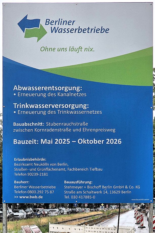 Aber die Bauzeit (bis Oktober 2026) auf dem Bauschild bezieht sich doch bestimmt nur auf den dort genannten Bauabschnitt, also von Kornradenstr. bis Ehrenpreisweg (Glockenblumenweg)?