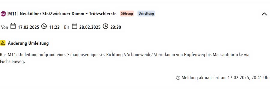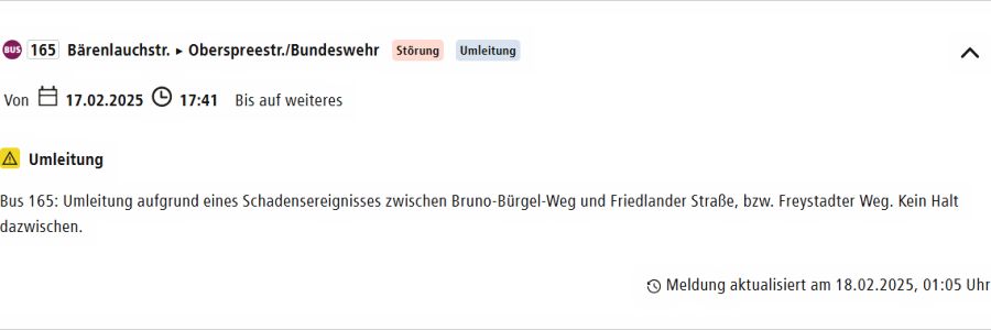 Re: Wasserrohrbruch in Oberspree - ein Ortsteil ohne ÖPNV 18.02.2025 09:15 |