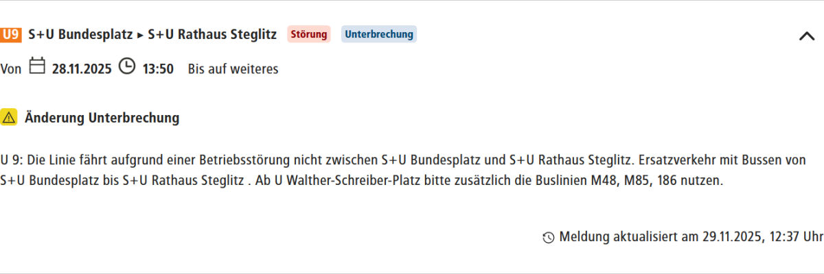 Die Störungsmeldung U9 ist wieder da.